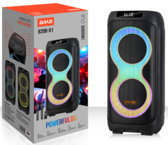 | *Material:Plastic *Speaker unit:2x8inch *RMS Power: 2Knobs+RMS 50W *Battery:7.4V/4400MAH lithium battery *Function:USB/TF/Bluetooth/FM/TWS/ *Accessory:9V2A adapter,manual,remote control,wireless microphone*2 |
