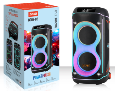 | *Material:Plastic *Speaker unit:2x8inch *RMS Power: 2Knobs+RMS 80W *Battery:12V/7AH lead Acid battery *Function:USB/TF/Bluetooth/FM/TWS/ *Accessory:15V4A adapter,manual,remote control,wireless microphone*2 |
