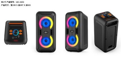 | Speaker:Dual 4″ Power output: 5W*2 Battery: 3.7V3600mA BT/USB/TF/FM/AUX/MIC/TWS With one wired Mic Size:199*201*397MM 3700pcs/40″HQ |