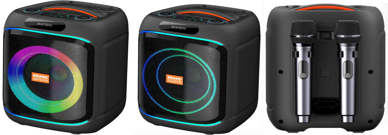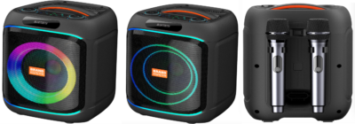 Bluetooth/USB/TF/FM/MIC/AUX/TWS/RGB Lights Effect/Bass, Treble, Echo, Mic Priority Adjustments. Accessories: Remote controller, Wireless Microphone 1 PCS, Battery for remote controller, Battery for Microphone, FM antenna, Bluetooth antenna,User manual, Colored Box | ||
