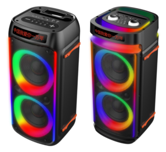 Speakers:6.5″x2+1″ RMS:40W                                                              Battery: 7.4V4000mAh 471x318x224mm                            Packing Size: 500x347x242mm Bluetooth/USB/TF/FM/MIC/AUX/TWS/RGB Lights Effect/Bass, Treble, Echo, Mic Priority Adjustments.                                          Accessories:  Remote controller, Wireless Microphone 1 PCS, Battery for  remote controller, Battery for  Microphone, FM antenna, Bluetooth antenna,User manual, Colored Box