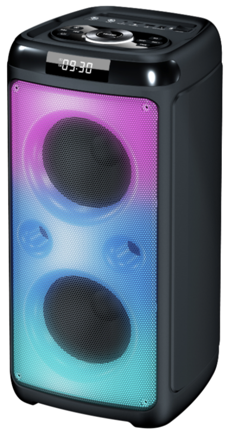 Speaker:6.5”x2+1” RMS: 40W                                                              Battery: 7.4V/3600mAh 246x540x250mm Bluetooth/USB/TF/FM/MIC/AUX/TWS/RGB Lights Effect/Bass, Treble, Echo, Mic Priority Adjustments.                                          Accessories:  Remote controller, Wireless Microphone 1 PCS, Battery for  remote controller, Battery for  Microphone, FM antenna, Bluetooth antenna,User manual, Colored Box