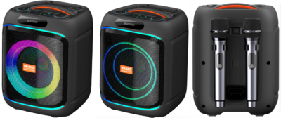 | BTS-B811 | Speaker:8”+1×1 | RMS: 40W Battery: 7.4V/4500mAh | 287x285x391mm | Bluetooth/USB/TF/FM/MIC/AUX/TWS/RGB Lights Effect/Bass, Treble, Echo, Mic Priority Adjustments. Accessories: Remote controller, Wireless Microphone 1 PCS, Battery for remote controller, Battery for Microphone, FM antenna, Bluetooth antenna,User manual, Colored Box | ||