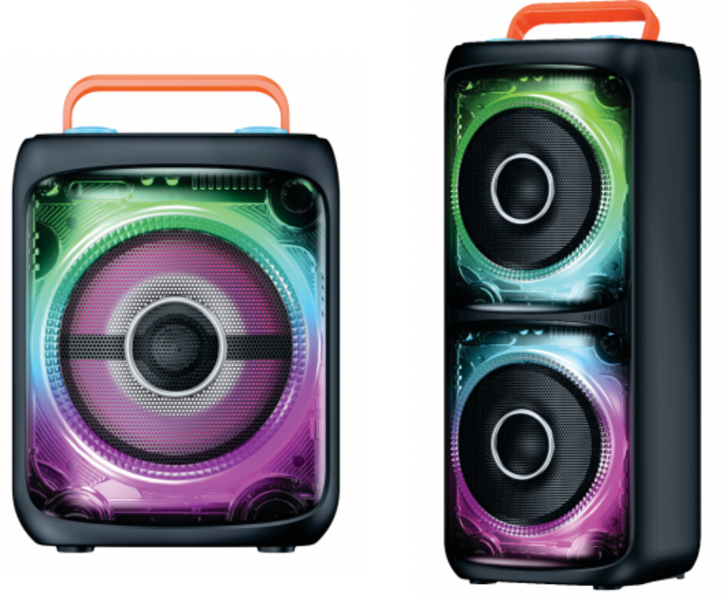 | BTS-B801 | Speakers:8″*2+1″ | RMS: 40W Max. PMPO: Battery: 7.4V/3600mAh | 285x275x355mm |