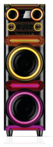 | Speaker: Dual10″+1″ | RMS:100W Battery:12V4.5A | 340x330x1040mm | Bluetooth/USB/TF/FM/MIC/AUX/TWS/RGB Lights Effect/Bass, Treble, Echo, Mic Priority Adjustments. Accessories: Remote controller, Wireless Microphone 1 PCS, Battery for remote controller, Battery for Microphone, FM antenna, Bluetooth antenna,User manual, Colored Box |