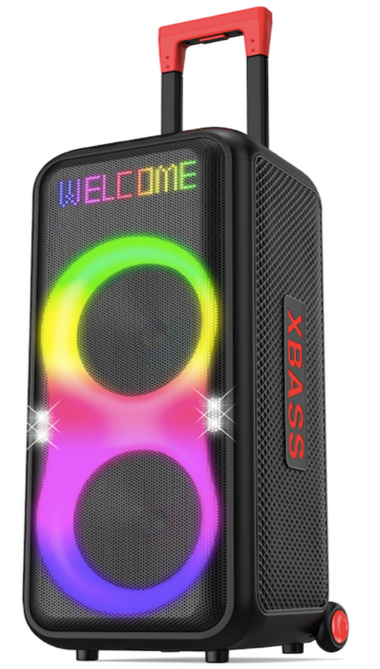 BTS-C840 Speaker:Dual 8″+1″ RMS:80W                                                  Battery:12V7A 305*705*305MM                                        Packing Size:350*365*800MM                                           Gross Weight:                                                        40HQ Container Loading Qty:660pcs/40HQ Bluetooth/USB/TF/FM/MIC/AUX/TWS/RGB Lights Effect/Bass, Treble, Echo, Mic Priority Adjustments.                                          Accessories:  Remote controller, Wireless Microphone 1 PCS, Battery for  remote controller, Battery for  Microphone, FM antenna, Bluetooth antenna,User manual, Colored Box