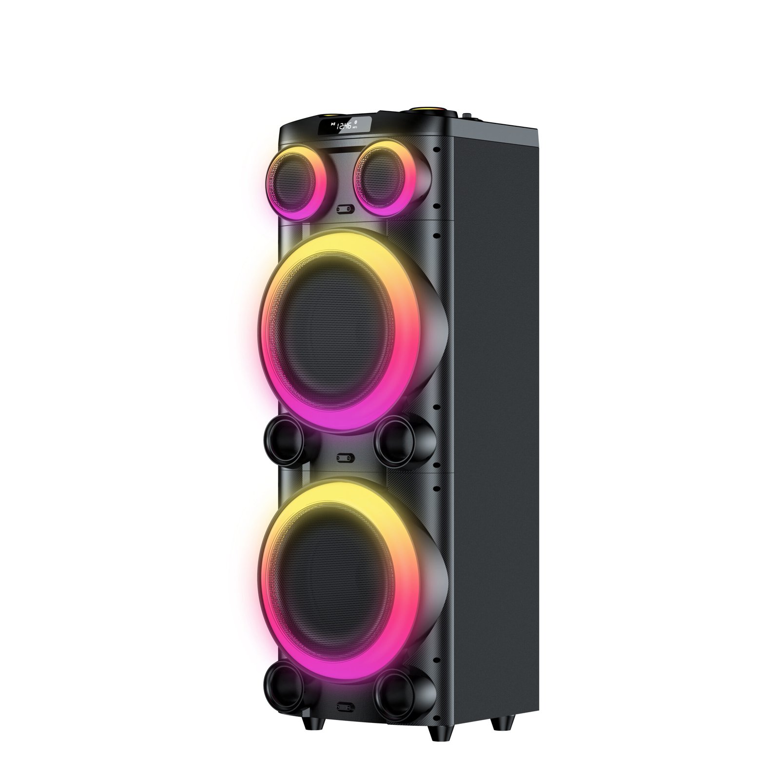 Speakers:12″*2+1″ Output Power:50W*2 USB/TF/FM/Bluetooth/Auxin/TWS battery:12V4.5A Products size:390*454*1125MM Packing size:460*450*1250MM 265pcs/40″HQ |