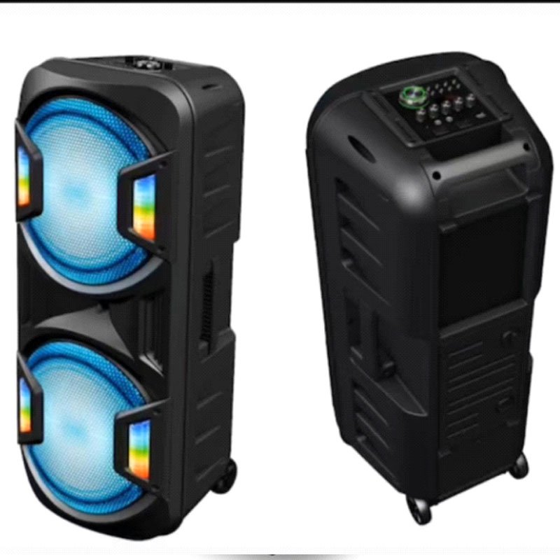 | Speaker: Dual12″+1″ Power output:20W*2 Battery: 7.4V4.5A BT/USB/TF/FM/AUX/MIC/TWS Products size:360*332*845MM Packing size:409*379*903MM 500pcs/40″HQ |