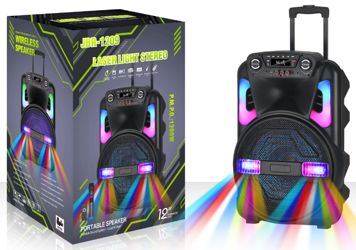 | *Material:Plastic *RMS Power: 40 W *5 knob+LED display *Speaker unit:12inch *Battery:7.4V/3600MAh *Function:USB/TF/Bluetooth/FM/TWS/ *Accessory:Adapter,manual,remote control,wireless microphone*1 |