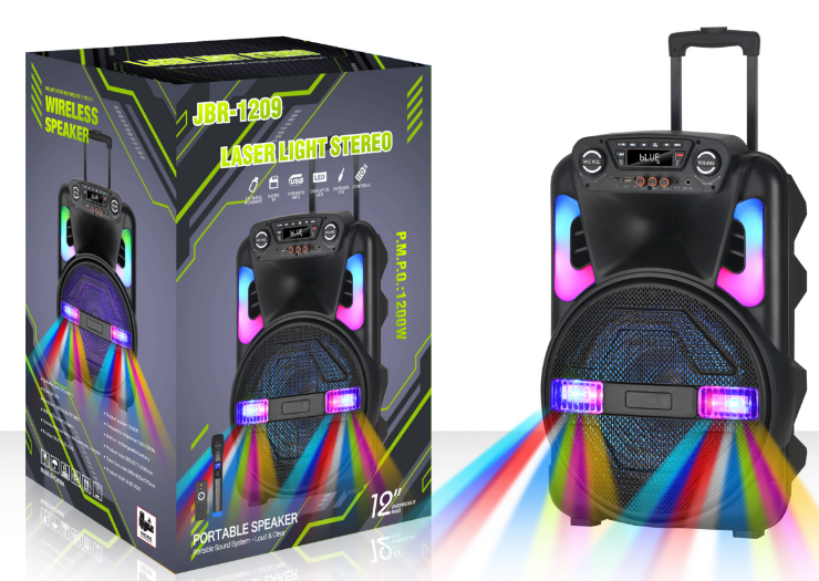 | *Material:Plastic *RMS Power: 50 W *5 knob+LED display *Speaker unit:15inch *Battery:7.4V/4500MAh *Function:USB/TF/Bluetooth/FM/TWS/ *Accessory:Adapter,manual,remote control,wireless microphone *2 |