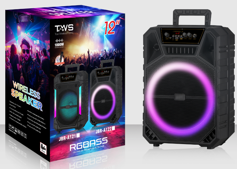 | *Material:Plastic *RMS Power: 20 W *3 knob+LED display *Speaker unit:12inch *Battery:3.7V/3000MAh *Function:USB/TF/Bluetooth/FM/TWS/ *Accessory:Charging cable,manual,remote control,wireless microphone*1 |