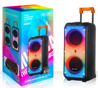 | *Material:Plastic *RMS Power: 60 W *1knob+LED display *Speaker unit: 2X10 inch *Battery:7.4V5400 mAH *Function:USB/TF/Bluetooth/FM/TWS/ *Accessory:Adapter,manual,remote control,wireless microphone*2 (VHF) |