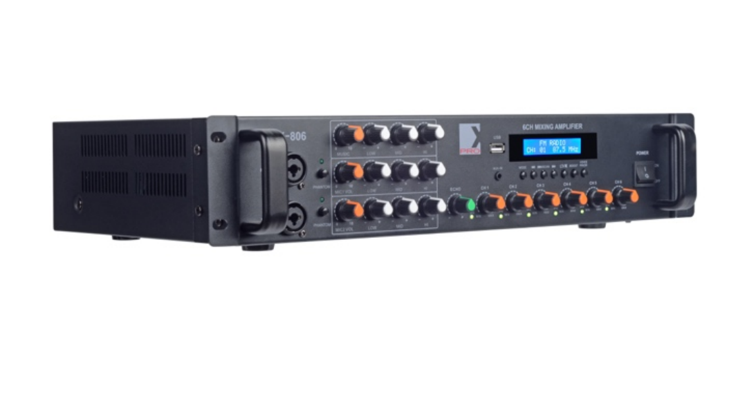 | Professional Amplifier with 6 channels Output Power:250W*6 6 Mono channels output USB/FM/Bluetooth/Aux in/ Product size: L430*D280*H88mm Packing size: L500*D352*H158mm |