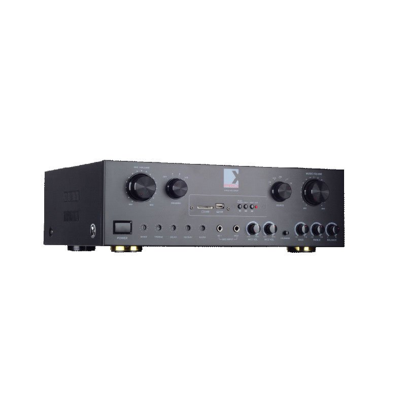 | Professional Amplifier Output Power:600W*2 USB/FM/Bluetooth/Aux in/Mic Product size: L430*D300*H130mm Packing size: L485*D388*H196mm |