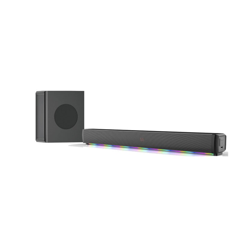 | Specification: 2.1CH sound bar system Bluetooth /ARC/5.0V/USB/Optical/Coaxial/Aux/FM Power: 120W (RMS) Power supply: 19V 4.5A adaptor 6.5 inch wired subwoofer Speaker specs:15W*4+60W subwoofer Bar size: W941×D80×H88mm Subwoofer size: W192×D310×H375mm L shape packing 1200 pcs/40HQ |